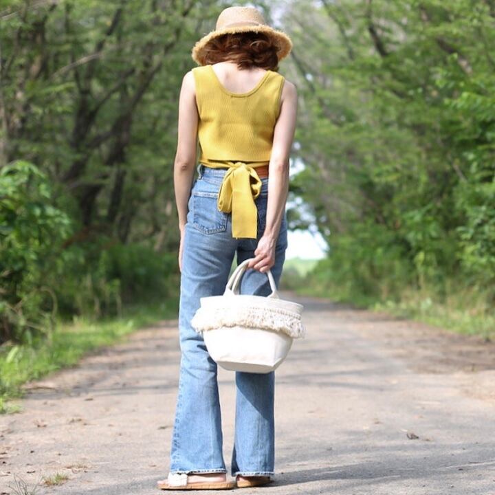 贅沢にぐるっと一周フリンジが施されたデザイン。様々なスタイリングに合わせやすいベーシックなフリンジバッグで持ち手はパイプハンドルで持ちやすくスマートな印象に。