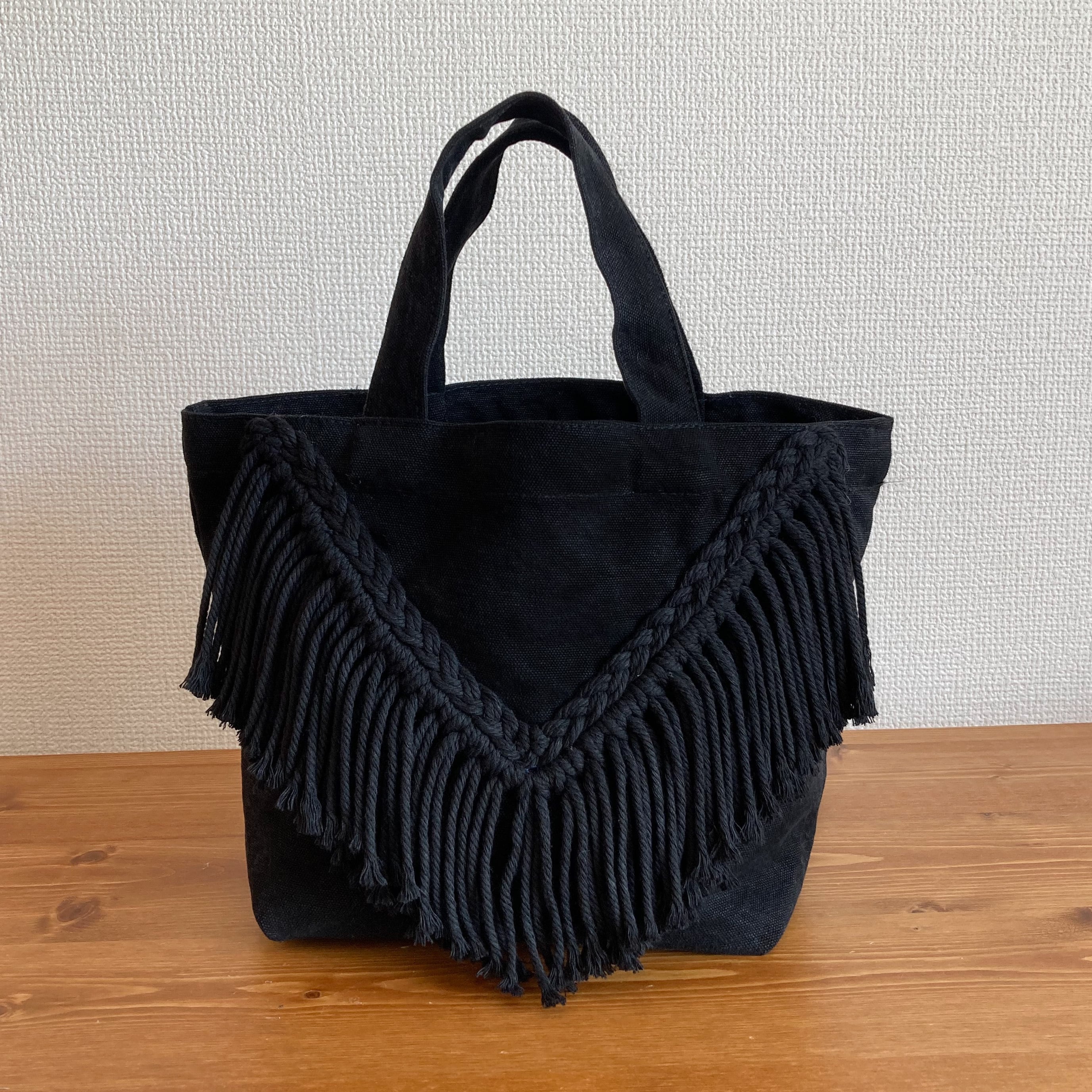 定番Vフリンジバッグに秋冬カラーのブラックが新登場!便利な内ポケット付き。