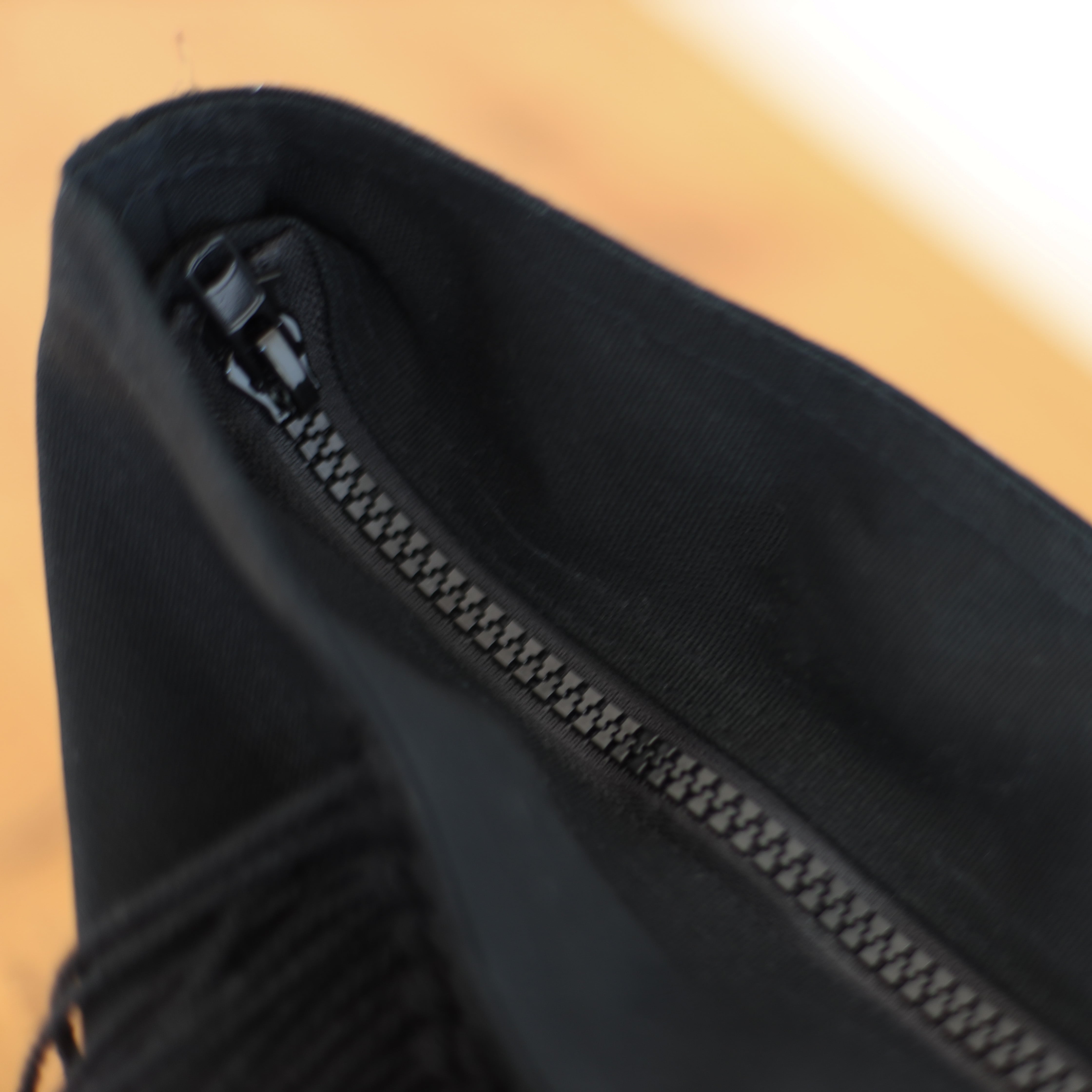 開閉口はファスナーの使用なので貴重品の収納も安心です。