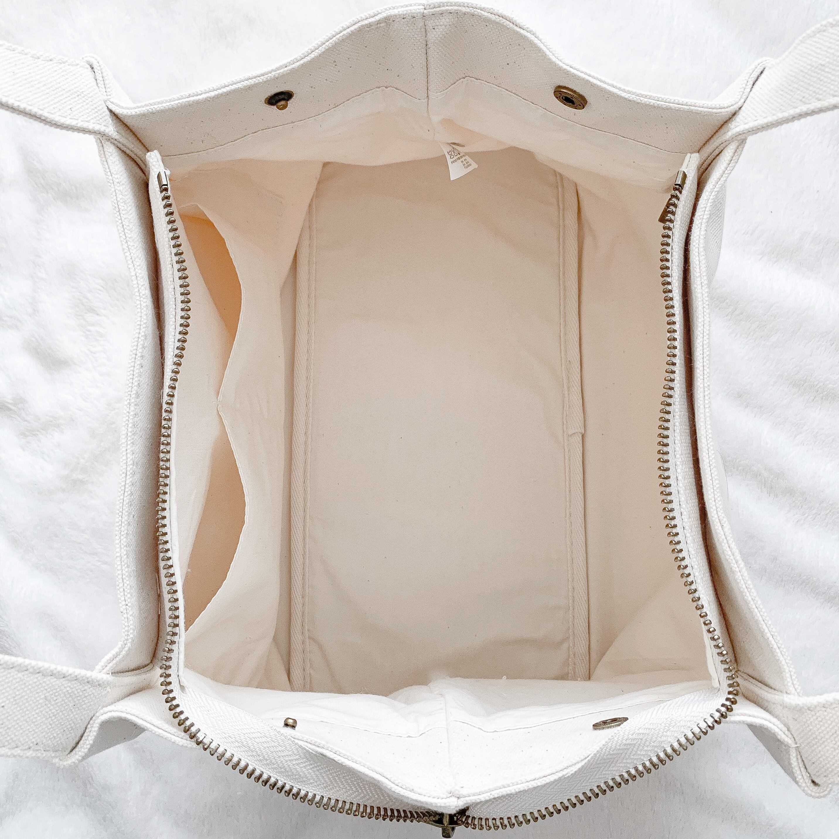 開閉口はファスナーとボタンの仕様となっており、貴重品の収納も安心。