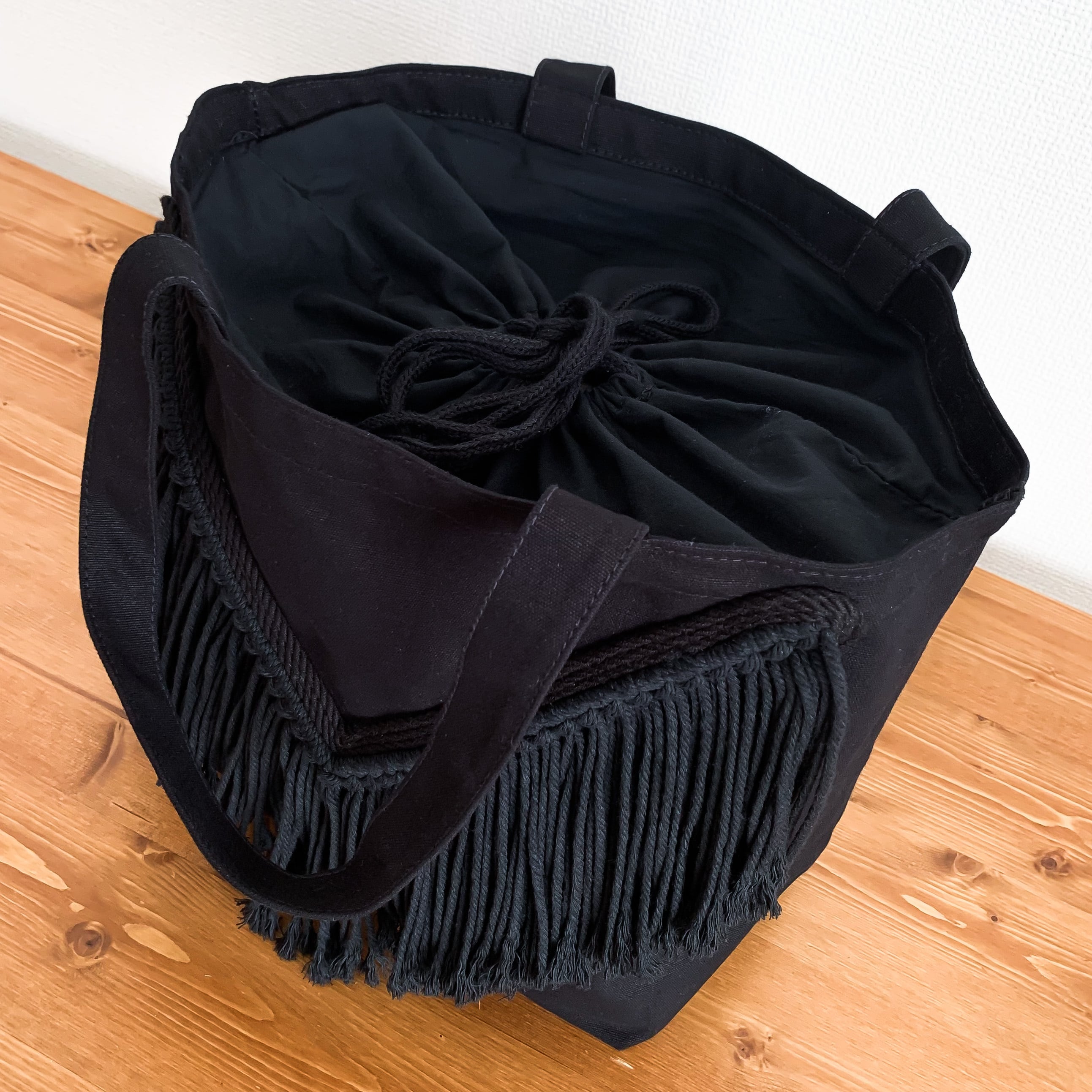 Vフリンジドローストリングトートバッグ