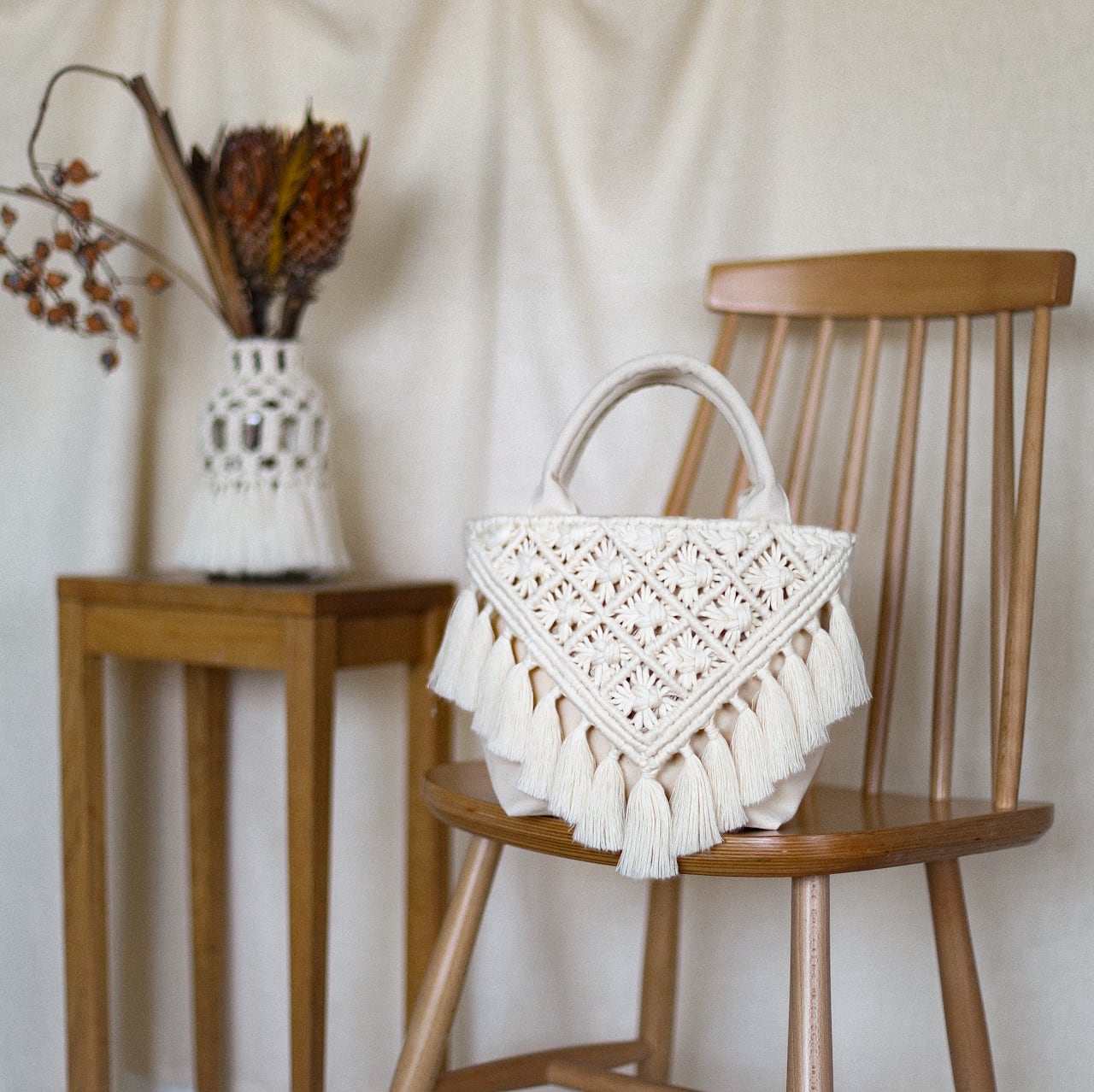 Macrame Triangle Tassel Bag